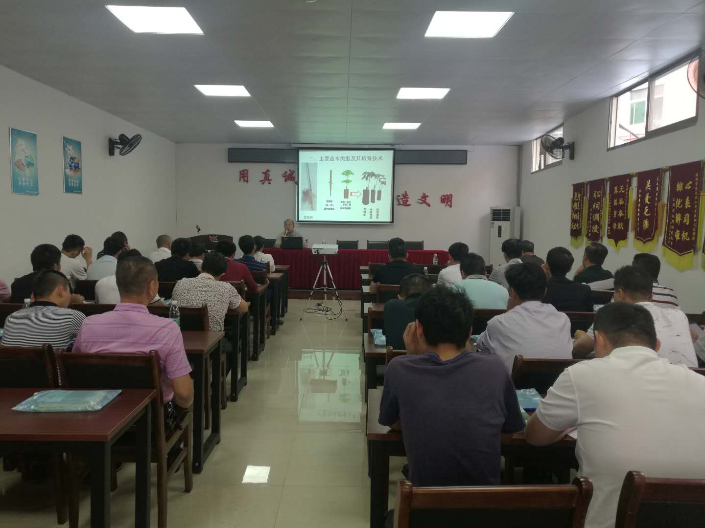 墾區(qū)新型職業(yè)農(nóng)工培育培訓(xùn)班得到廣東省農(nóng)廣校茂名分校的大力支持與幫助,直接采取送教下鄉(xiāng)、送教至田頭。4月26日,在省農(nóng)廣校茂名分校周海汕校長及周主任等的組織下,周海汕校長不但親自授課,還特邀請國家天然橡膠產(chǎn)業(yè)技術(shù)系湛江試驗(yàn)站長羅萍研究員、中國熱帶科學(xué)研究院橡膠研究所副研究員以及全國割膠冠軍、全國五一勞模劉金鳳來到揭陽墾區(qū)千里送教,進(jìn)行圖文并茂的言傳身教。