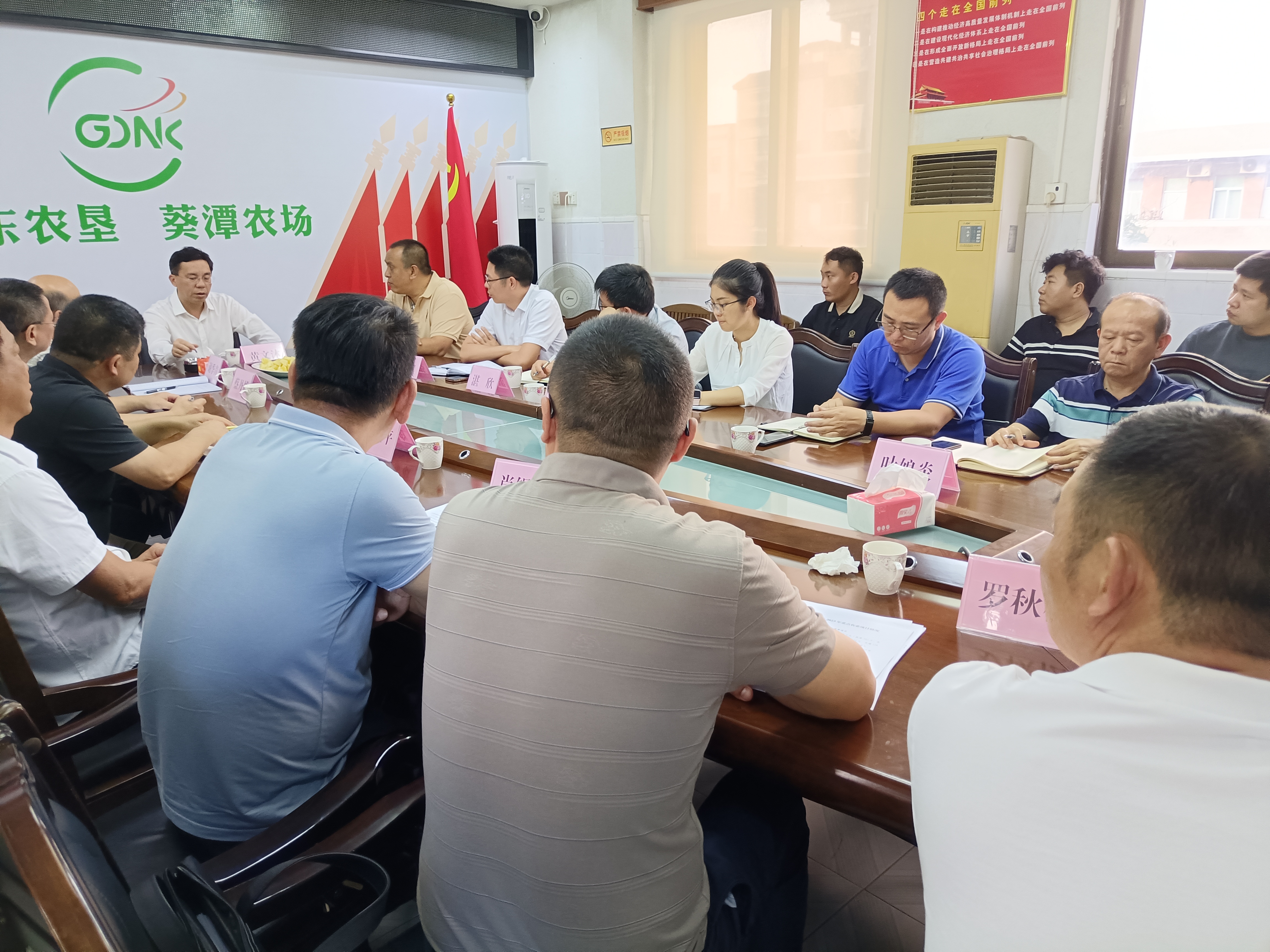 5月31日下午,廣東省農(nóng)墾集團(tuán)公司黨委委員、副總經(jīng)理黃文沐一行到葵潭農(nóng)場有限公司調(diào)研指導(dǎo)工作。揭陽農(nóng)墾集團(tuán)有限公司黨組成員、副總經(jīng)理蔡丹雄、盧國勤等同志陪同調(diào)研。