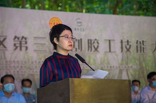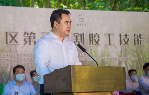 10月20日,揭陽(yáng)市總工會(huì)、揭陽(yáng)農(nóng)墾局、汕尾農(nóng)墾局在揭陽(yáng)墾區(qū)卅嶺農(nóng)場(chǎng)聯(lián)合舉辦“2022年粵東墾區(qū)第三屆割膠工技能大賽”。揭陽(yáng)市委副書記陳小鋒,廣東省農(nóng)墾集團(tuán)公司(省農(nóng)墾總局)黨委副書記、董事鐘勁東,揭陽(yáng)市人大常委會(huì)副主任、市總工會(huì)主席葉明文,揭陽(yáng)市委副秘書長(zhǎng)王群青,廣東省揭陽(yáng)農(nóng)墾集團(tuán)有限公司(農(nóng)墾局)黨組書記、董事長(zhǎng)(局長(zhǎng)) 負(fù)責(zé)人,廣東省汕尾農(nóng)墾集團(tuán)有限公司(農(nóng)墾局)黨組書記、董事長(zhǎng)(局長(zhǎng))羅雪清,揭陽(yáng)市總工會(huì)黨組書記、常務(wù)副主席許瑩,揭陽(yáng)市氣象局黨組書記、局長(zhǎng)黃紀(jì)東出席活動(dòng)。