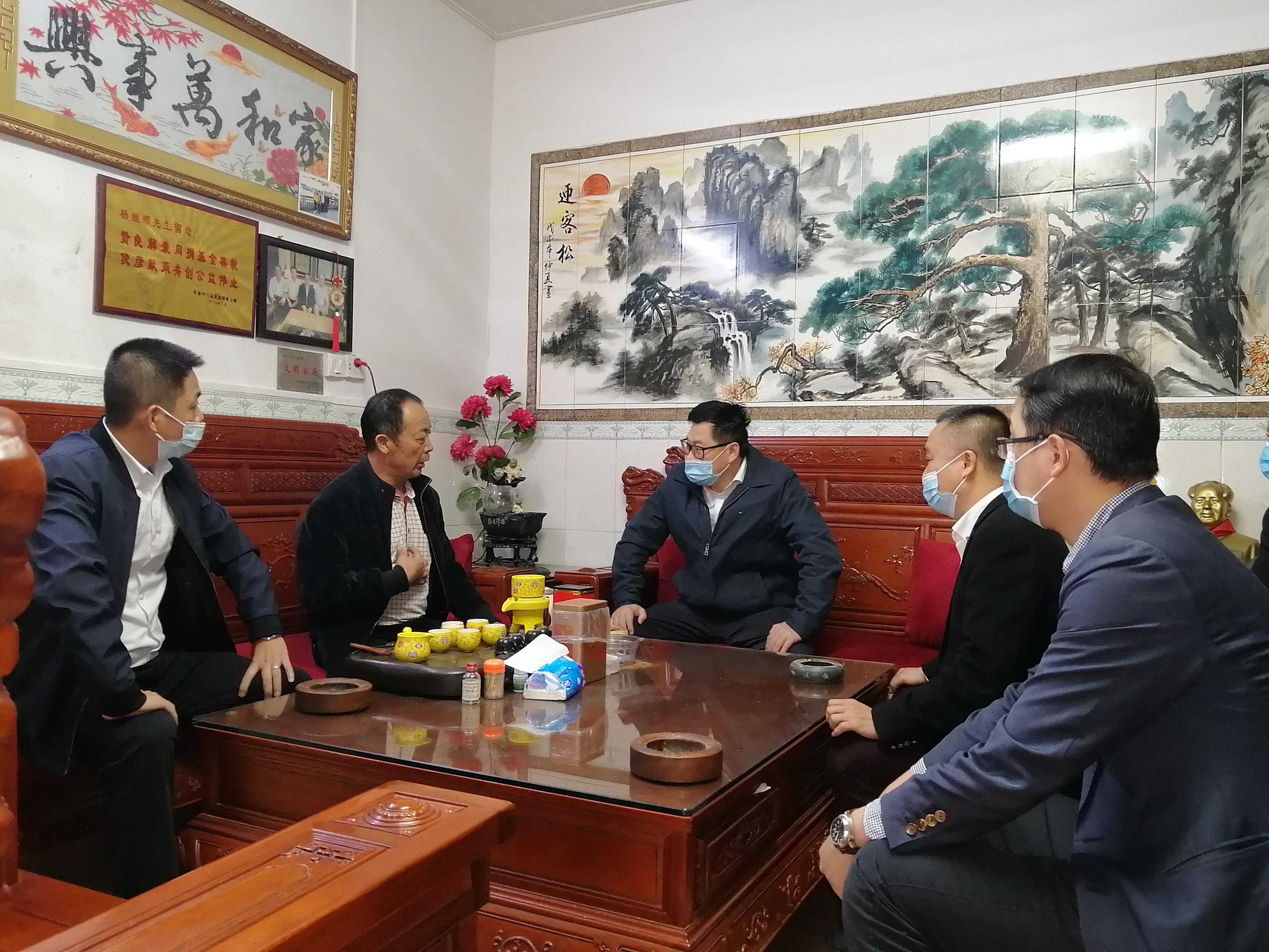 鐘勁東(左三)慰問大池農(nóng)場公司職工楊繼順(左二)