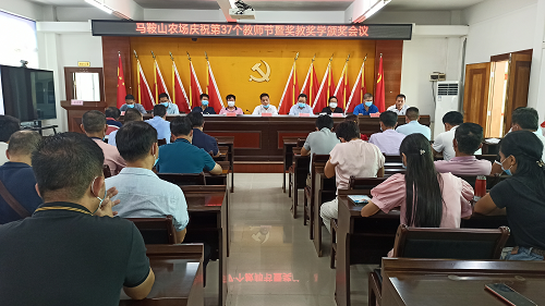 9月9日,馬鞍山農(nóng)場召開慶祝第37個(gè)教師節(jié)暨2020~2021學(xué)年度獎(jiǎng)教獎(jiǎng)學(xué)頒獎(jiǎng)會議。農(nóng)場黨政領(lǐng)導(dǎo)班子、各部門負(fù)責(zé)人、各村(居)、管區(qū)書記,鄉(xiāng)賢代表,教育組全體班子成員、各學(xué)校獲獎(jiǎng)師生代表等共40多人參加。會議由黨委委員、副場長陳榮勝主持。