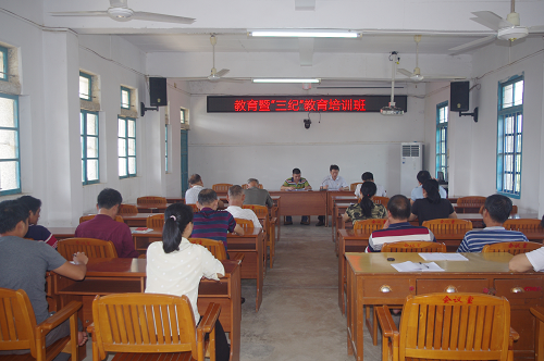 黨委書記、場長盧國勤作開班動員,黨委委員、紀委書記徐宏標作《守住底線 廉潔從政 努力把卅嶺農場建設得更美好》的輔導報告。報告中提出:一要加強學習,學習習近平新時代中國特色社會主義思想,學習黨章、黨規(guī)、黨紀。二要保持廉潔從業(yè)思想行動,努力工作。三要以案為鑒,認真落實黨風廉政建設,落實責任,形成強大工作合力,要從落實黨風廉政建設黨委主體責任的高度,將紀律教育與當前各項工作同部署,同推進,同落實,齊心合力謀發(fā)展,共創(chuàng)卅嶺美好明天。