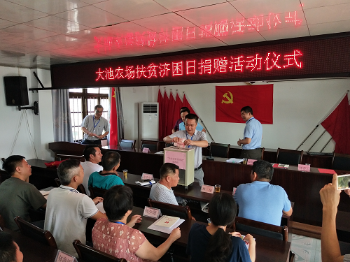 7月1日上午,大池農(nóng)場開展扶貧濟(jì)困日捐贈(zèng)活動(dòng)儀式,參加儀式人員有機(jī)關(guān)全體工作人員及各村(居)書記約50人,全體領(lǐng)導(dǎo)干部職工紛紛援手,為扶貧濟(jì)困出力。