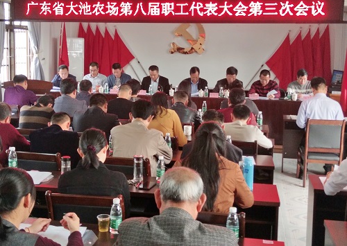3月19日上午,大池農(nóng)場召開第八屆職工代表大會(huì)第三次會(huì)議。揭陽農(nóng)墾集團(tuán)公司(農(nóng)墾局)黨組成員、副總經(jīng)理(副局長)王錦文,工會(huì)副主席蔡旭平等領(lǐng)導(dǎo)應(yīng)邀出席,會(huì)議由大池農(nóng)場黨委委員、副場長、工會(huì)主席林春云主持。場全體職工代表共39人參加會(huì)議。