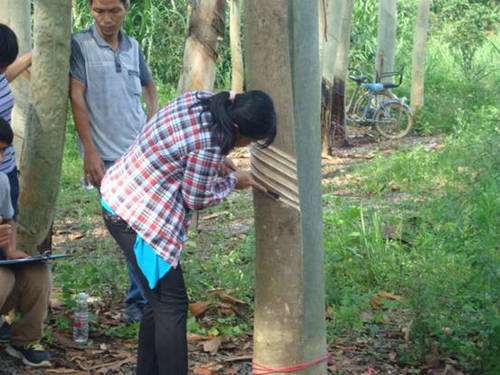 6月5日上午,對學員們進行橡膠樹樁割膠考核。經(jīng)考核,全班15名學員成績優(yōu)秀,準予結(jié)業(yè),割膠技術(shù)培訓班圓滿結(jié)束。