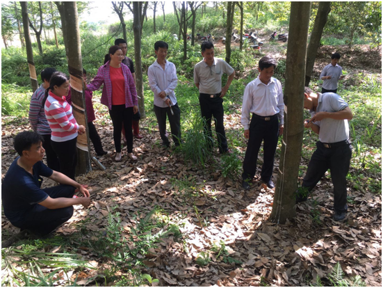 此次培訓(xùn)采取理論與實(shí)際操作相結(jié)合的方式,農(nóng)場(chǎng)割膠總輔導(dǎo)員許安樂(lè)針對(duì)橡膠開(kāi)割樹(shù)的管理和常見(jiàn)病害治療等方面開(kāi)展詳細(xì)的講解,到橡膠園開(kāi)展磨刀技能和割膠技術(shù)現(xiàn)場(chǎng)指導(dǎo),對(duì)學(xué)員在割膠操作過(guò)程中存在的不規(guī)范動(dòng)作一一予以糾正。通過(guò)此次復(fù)訓(xùn),有效提高了職工科學(xué)管理橡膠園的水平,為今年干膠的高產(chǎn)穩(wěn)產(chǎn)奠定了基礎(chǔ)。